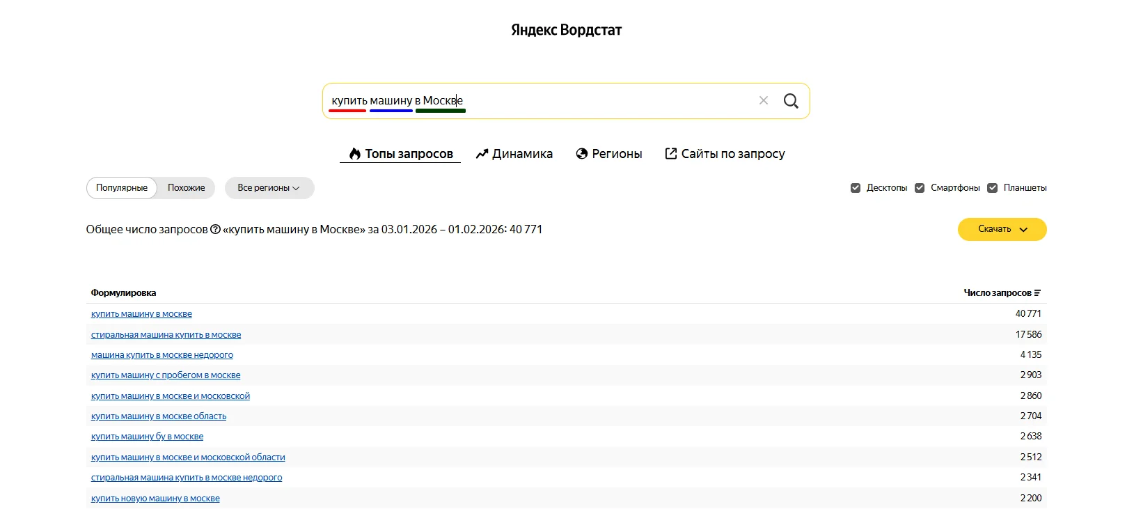 - Уточнение: «в Москве», «для интернет‑магазина», «для Яндекс Директ», «недорого».